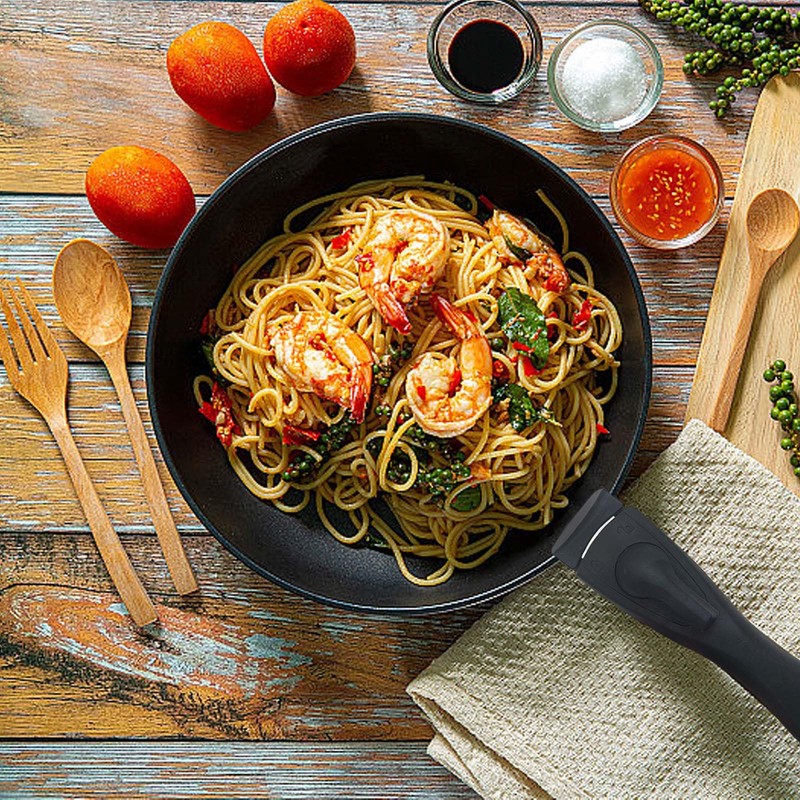 - Safe and durable: Classic black is not only elegant, but also extremely dirt-repellent, so your kitchen always feels fresh. The removable pot handle has a circuit breaker button. Only when the button is pressed, the chuck is completely ejected and the handle and pot body can be separated.