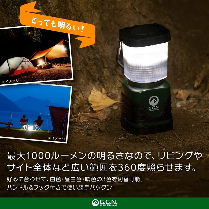 (G.G.N.) GN02CM023 LED Lantern, 1,000 Lumens, Adjustable Brightness, Outdoor, Disaster Prevention, Green, 7.1 x 3.3 inches (18 x 8.5 cm)
