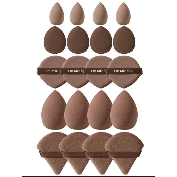 - -4 PCS Makeup Sponge -4 PCS Mini Makeup Sponges -4 PCS Triangle powder puffs for loose powder and makeup setting -4 PCS Air Cushion Powder Puffs for facial concealer -4 PCS Mini Air Cushion