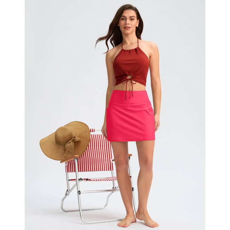 G Gradual Women's 16" Swim Skirt with Pockets High Waisted Tummy Control Modest Swimsuit Bathing Suit Bottoms for Women(Watermelon,XXXL)
