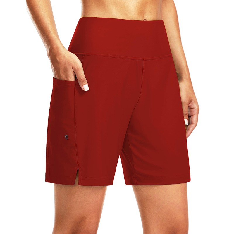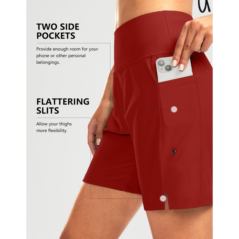 G Gradual Women's 7" Long Swim Board Shorts High Waisted Quick Dry Beach Swimming Shorts for Women with Liner Pockets, Red, X-Large