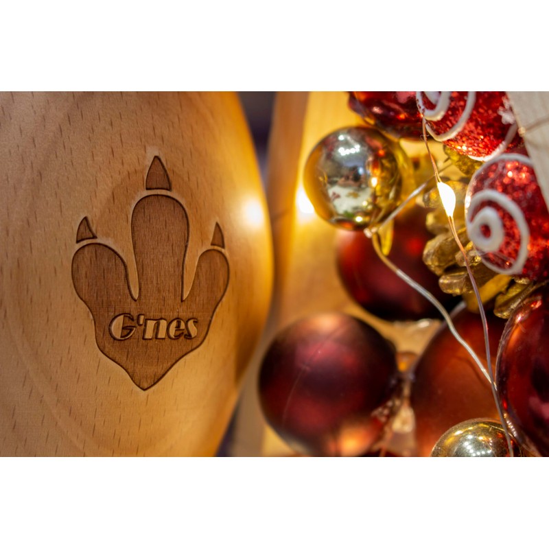 G'nes Eco-friendly Beech Wooden Cup with T-Rex Dinosaur Leg 250 ml with Engraved Logo + Puzzle Shaped Bamboo Coaster - Premium Quality - Hand made