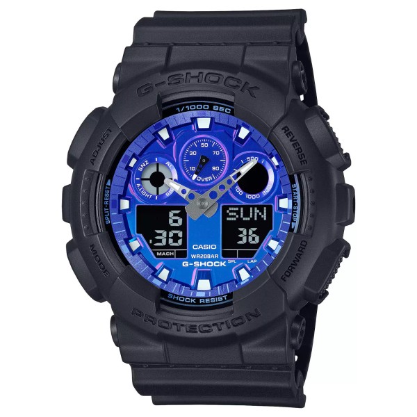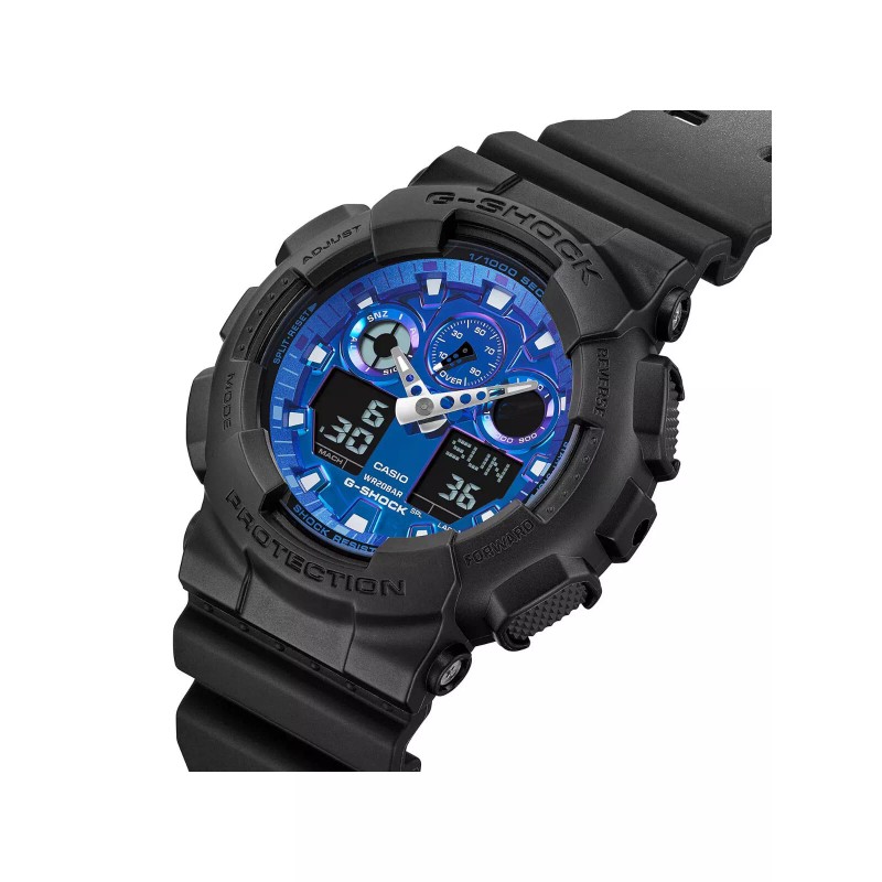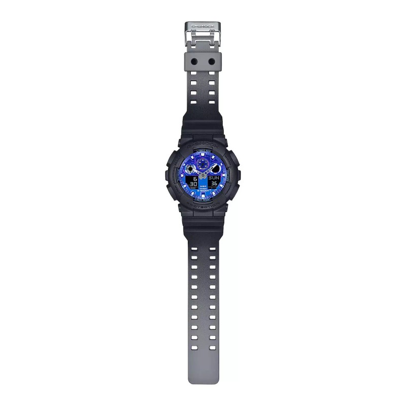 G-SHOCK NEW Casio G-Shock FIRE INSIDE Vivid Blue AnaDigi World Time Mens Watch GA100FL1A