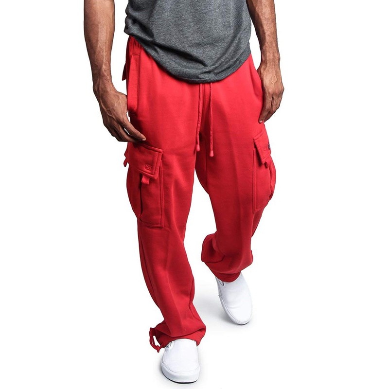 G-Style USA Men's Solid Fleece Heavyweight Cargo Pants FL77 - Red - 2X-Large