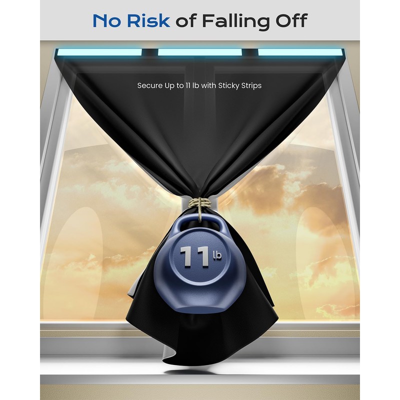 - [Upgraded Adhesive Strips]: Our blackout curtains for bedroom are pre-fitted with premium heat-resistant adhesive strips instead of ordinary tapes for smoother & quicker installation. Simply peel off protective film and adhere to the installation area. These strips can maintain robust adhesion under direct sunlight, supporting weights up to 11 pounds, and leave no residue upon removal.