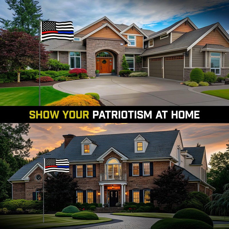 G128 Combo Pack: 16 Ft Telescoping Aluminum Flagpole (Black) & Thin Blue Red Line American Flag 3x5 Ft, ToughWeave Series Embroidered 210D Polyester | Pole with Flag Included