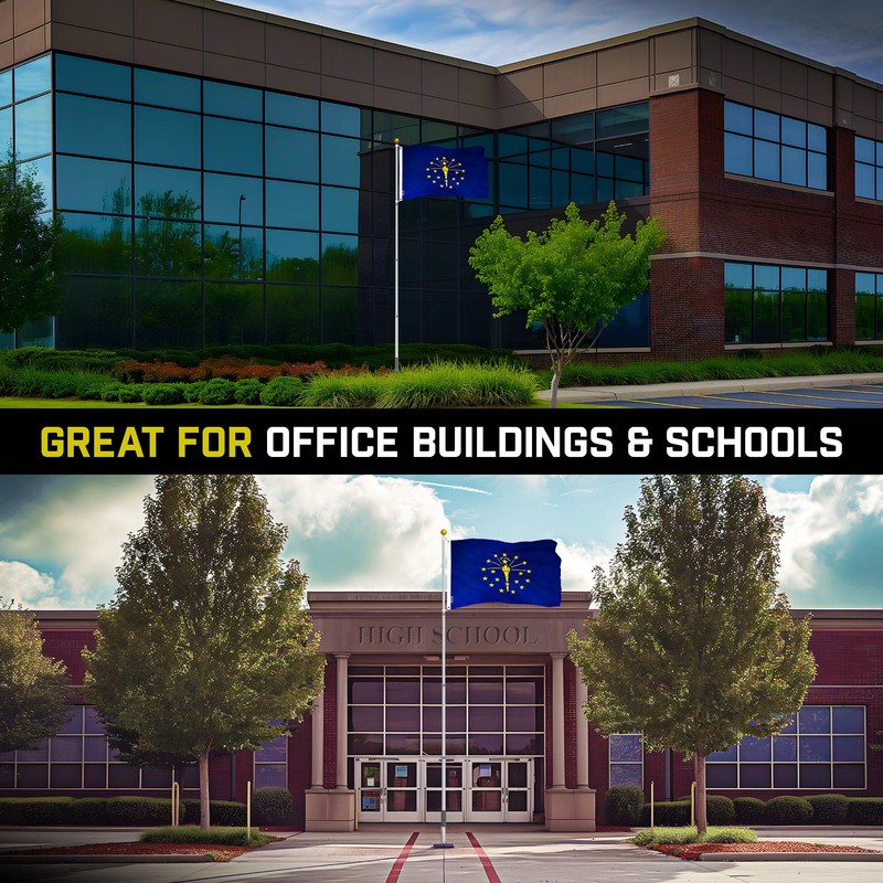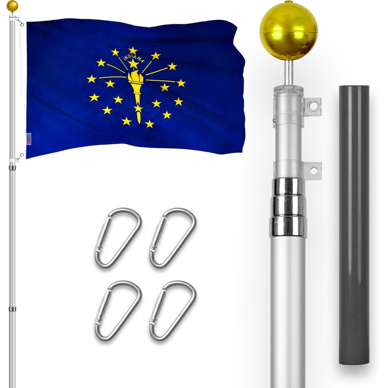 G128 Combo Pack: 16 Ft Telescoping Aluminum Flagpole (Silver) & Indiana IN State Flag 3x5 Ft, ToughWeave Series Embroidered 300D Polyester | Pole with Flag Included