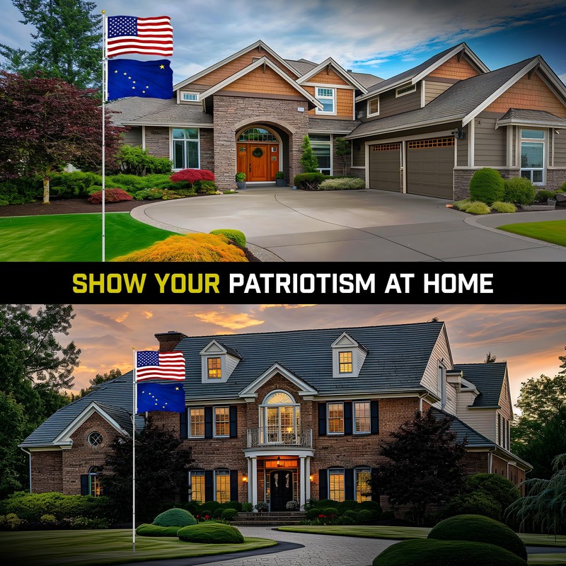 - Package: 1 USA flag & 1 Alaska flag; 1 PVC sleeve; 1 Flagpole; 1 Topper Golden Ball Ornament; 1 Instruction; 4 Stainless Steel Clips