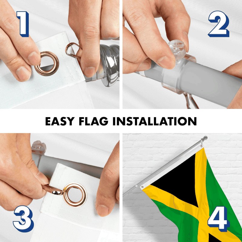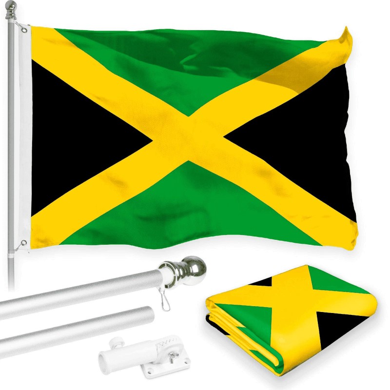 DELUXE PACKAGE: G128 is including a 3x5 ft printed Jamaica flag with brass grommets for this deluxe flag and flagpole package! All the guarantees of the quality of our G128 flag is included in this package.