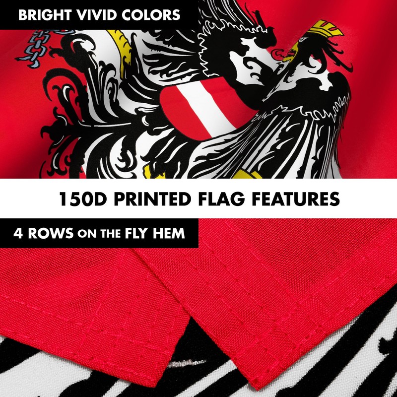 - DELUXE PACKAGE: G128 is including a 3x5 Ft, Printed, Austria Coat of Arms flag with brass grommets for this deluxe flag and flagpole package!