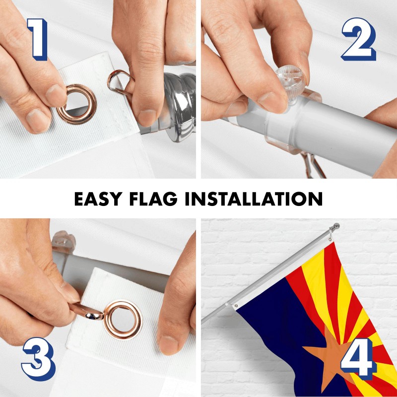 G128 Combo Pack: 6 Ft Tangle Free Aluminum Spinning Flagpole (Silver) & Arizona