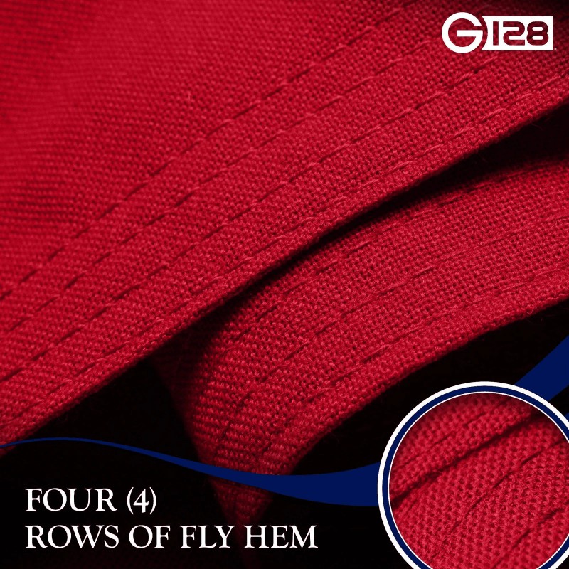 Fly ends are secured with FOUR rows of lock stitching to prevent ripping and tearing. Heavy duty polyester canvas heading with two strong solid brass grommets for easy hanging and display.