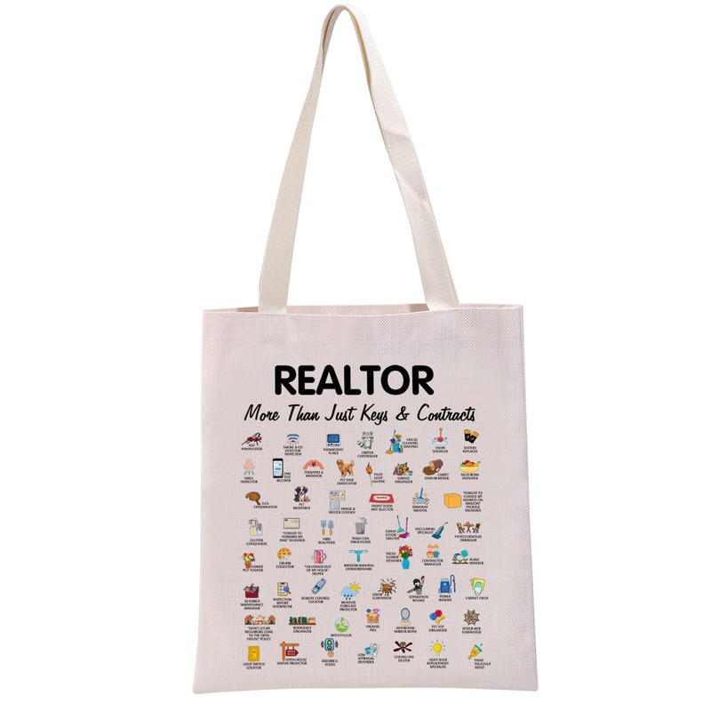- Bag with printing:REALTOR More Than Just Keys & Contracts CLUTTER CONQUEROR "FORGOT TO FORWARD MY MAIL" DELIVERER YARD BEAUTIFUL TRASH CAN TAKER-OUTER EXPERT FLOOR SWEEPER VACUUMING SPECIALIST PATIO FURNITURE ARRANGER FLOWER POT PLANTER CRUMB COLLECTOR "I'M LOCKED OUT OF MY HOUSE" HELPER WINDOW WASHING EXTRAORDINAIRE FRESH FLOWER DESIGNER CONTRACTOR WRANGLER PLANT WATERER ANT ANNIHILATOR .Special print and design and print can highlight your personal character and taste easily.