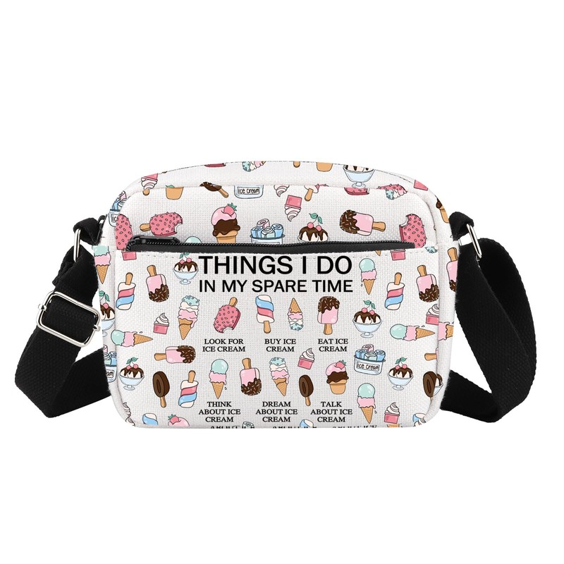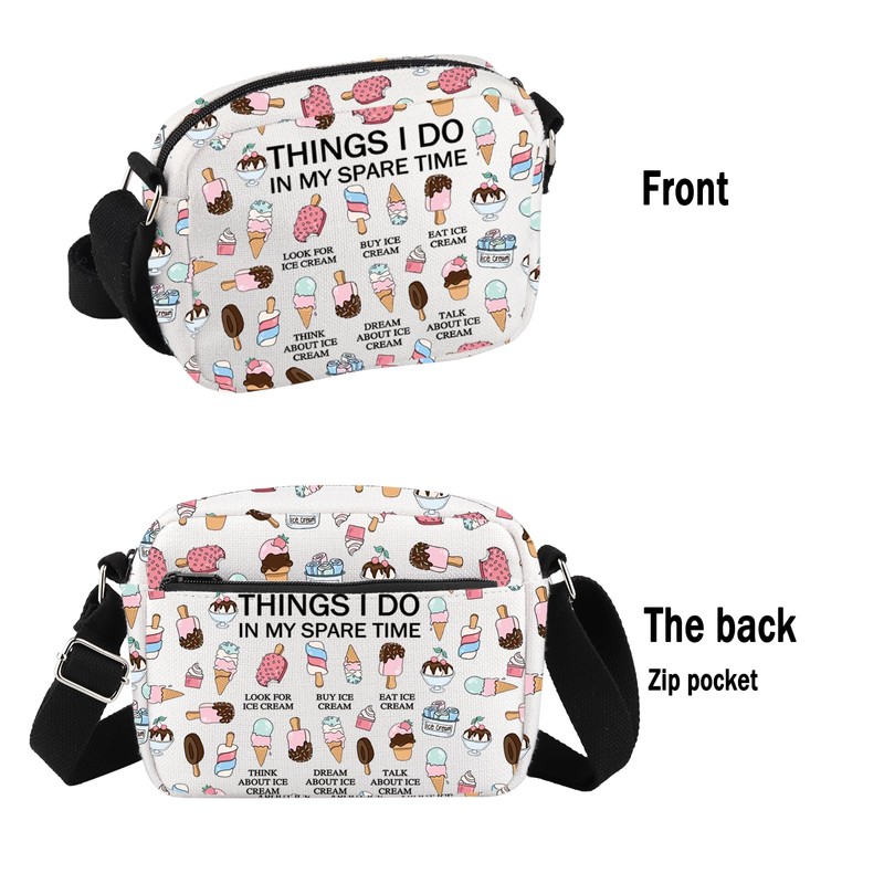 - Bag with printing:THINGS I DO IN MY SPARE TIME LOOK FOR ICE CREAM BUY ICE CREAM EAT ICE CREAM THINK ABOUT ICE CREAM DREAM ABOUT ICE CREAM TALK ABOUT ICE CREAM.Special print and Design and print can highlight your personal character and taste easily.
