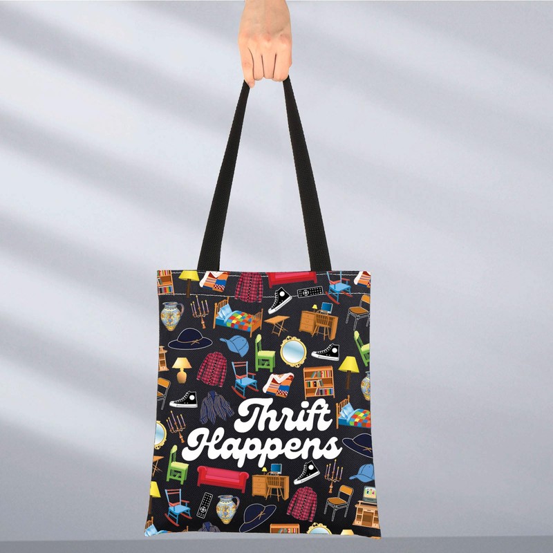 G2TUP Thrifting Tote Bag Thrift Store Lover Gifts Antiquing Enthusiast Gift Thrift Happens Thrifting Shopping Bag (Happens CA)