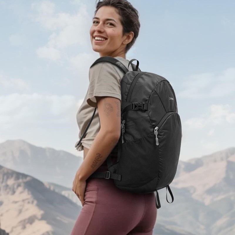 - FOLDABLE and 25L LARGE CAPACITY: This packable backpack (The expanded size is 10.6*6.7*17.3 inches) is easy to fold up into its inner pocket (The folded size is only 8.3*5.9 inches). You can easily pack it in your car or luggage while traveling, hiking or sightseeing