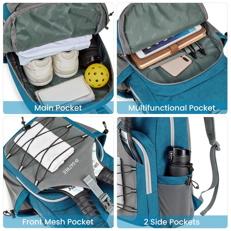 G4Free Pickleball Bag, Pickleball Backpack for Women and Men, Adjustable Padel Bag Fits 2 to 4 Paddles, Gifts for Pickleball Lovers, Teal Blue