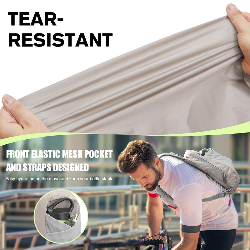 - 【Convenient Access to Essentials】 Engineered with a mesh front pocket and a reflective elastic strap, this design allows for swift retrieval of your water bottle while ensuring it remains securely in place. The breathable mesh material dries quickly even when if it gets wet.