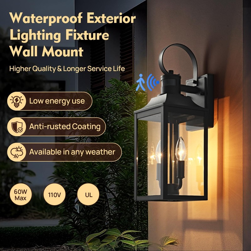 GAAZIE Motion Sensor Outdoor Wall Light Black 2-Lighting Exterior Lighting Fixtures Wall Mount,Farmhouse Waterproof Porch Lights, Modern Outside Light for House 1 Pack