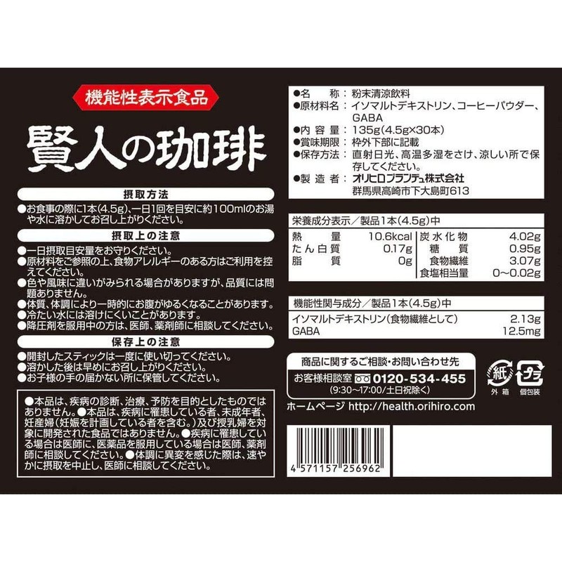 【2箱】オリヒロ 賢人の珈琲(コーヒー) イソマルトデキストリン GABA 配合30本Ⅹ2箱(4571157256962-2)