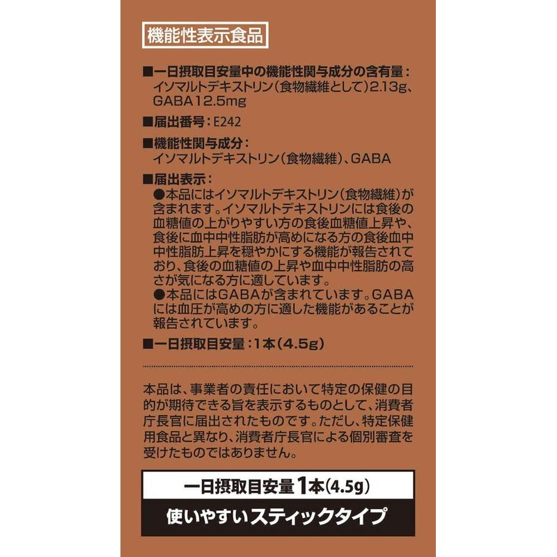 - 食後の血糖値が気になる方、食後の中性脂肪が気になる方、血圧が高めの方に適した機能性表示食品