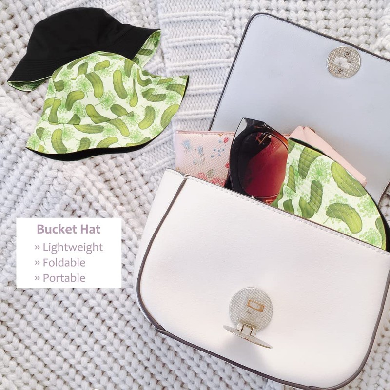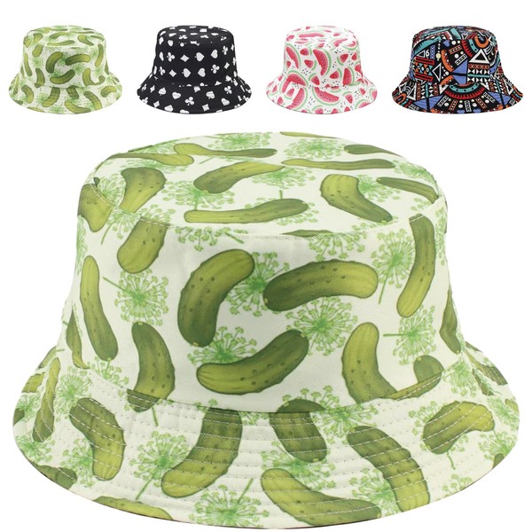 Gadfary Reversible Bucket Hat for Women Summer Travel Fisherman Cap, Girls Cute Double Side Wear Bucket Cap (Cucumber)