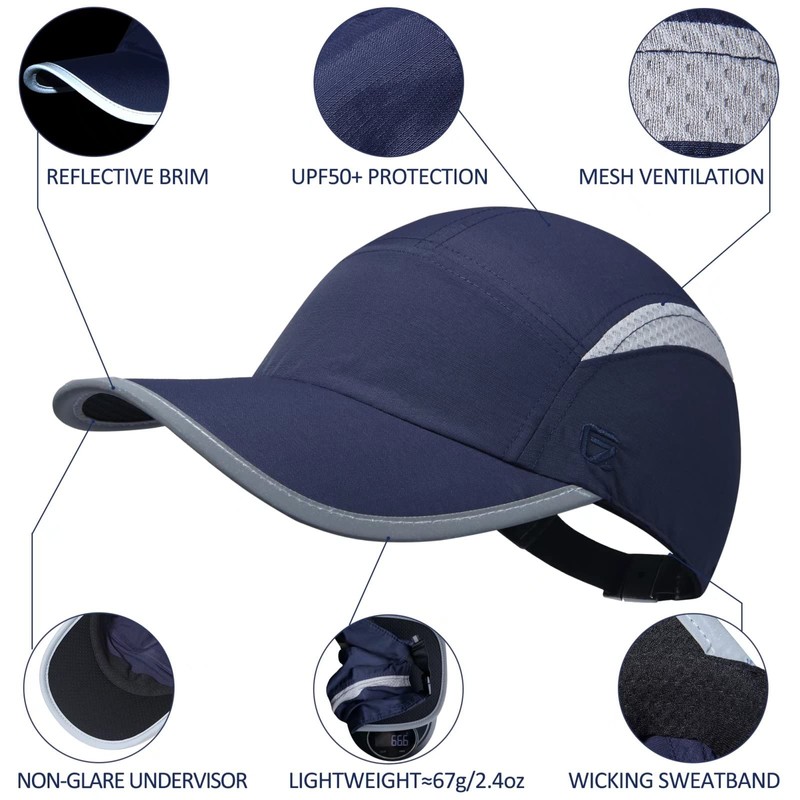 - Breathable Design & Reflective Brim: Two sides airy meshes are more conducive to ventilation, speed up the flow of moisture and heat, and to keep your head dry and cool in hot weather or outdoor sports, Reflective brim for increased visibility & safety on low-light runs