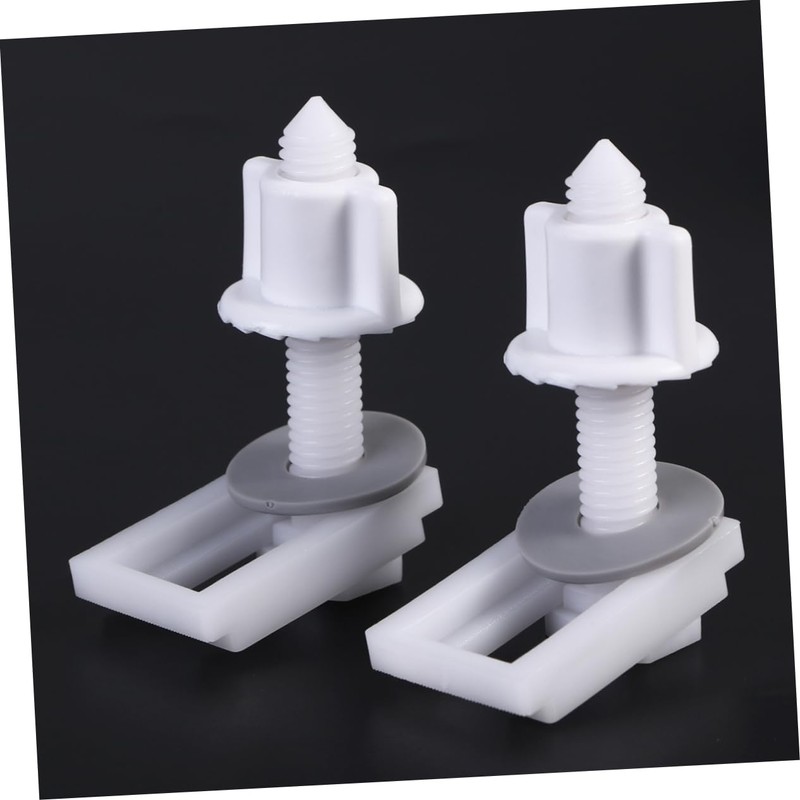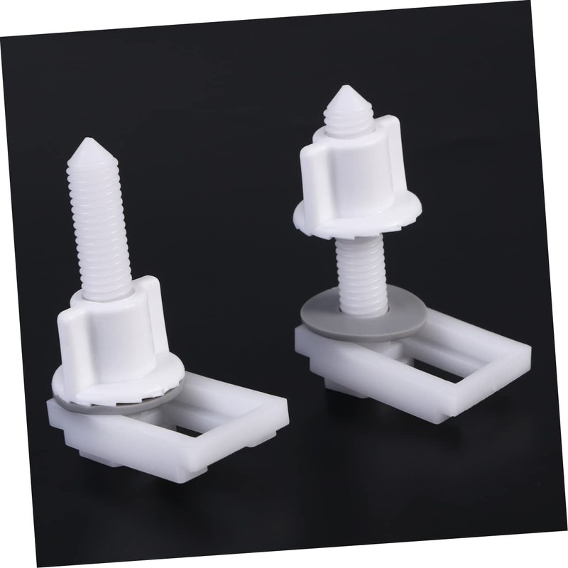 toilet bolts Made of plastic material, These screws, nuts and washers are accessories for toilet seat use.glacier bay toilet seat You can use them to fix the toilet seat onto the toilet bowl by your self.top mount toilet seat hinges This product includes 2pcs of screws, 2pcs of nuts and 2pcs of washers