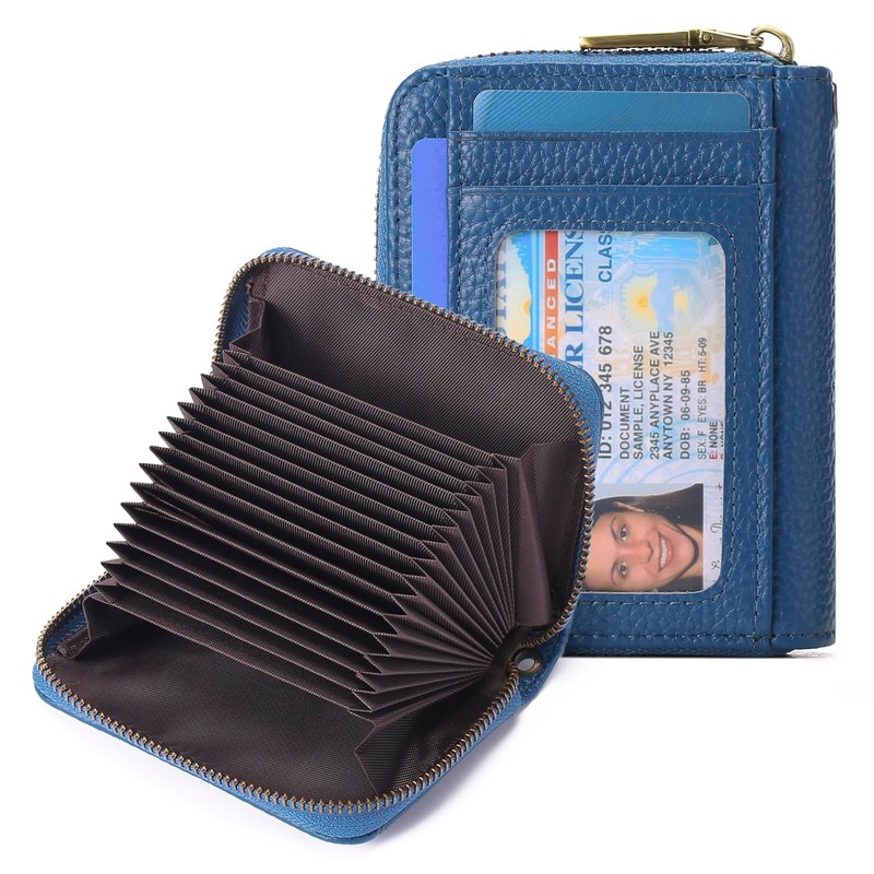 - Large Capacity Credit Card Wallet for Women: 15 accordion-style card slots, 3 external card slots for frequently used cards, 2 cash slots, 1 ID window, and 1 folding coin pocket. Roomy enough to hold your credit cards, debit cards, business cards, ID cards, checks, driver's licenses, bills, receipts, folded cash, keys, coins, and more.