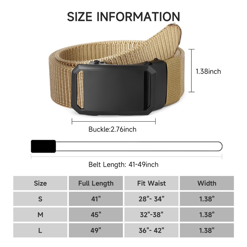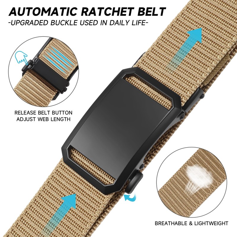 - Match Every Occasion - Our nylon belts for men are perfect for golfing, climbing, and hiking. This ratchet nylon belt can also hang a holster, spare mag, flashlight, wallet, keys, phone, notepad, etc. The high-quality buckle and webbing make these ratchet belts for men very suitable as work belts, golf belts, mens belts for jeans.