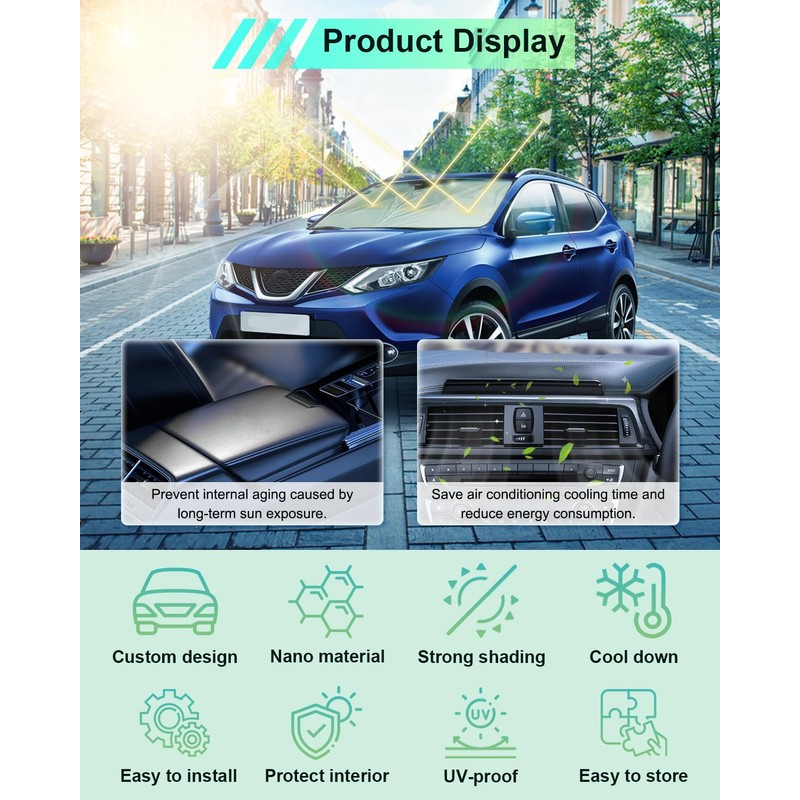 Die GAFAT Sonnenschutz Frontscheibe schtzt Ihr 2014-2021 Nisan Qashqai J11 vor der Hitze! Effektiver Sonnenschutz, das Interieur schtzenDie Schattierungswirkung betr?gt bis zu 99 %. Verhindern Sie effektiv den Temperaturanstieg in der Mittelkonsole. Schtzt Innenr?ume vor Alterung und reduziert Reparatur- und Austauschkosten Gesundheit schtzenVerhindern Sie zu hohe Temperaturen im Auto und einen Hitzschlag. Verhindern Sie, dass der Sitz der Sonne ausgesetzt wird und den menschlichen K?rper verbrht. Bereitstellung des privaten RaumsBeim Ruhen im Auto kann es die Sichtlinie blockieren und jederzeit einen privaten Raum gew?hrleisten. EnergieeinsparungReduzieren Sie die Temperatur im Auto, verbessern Sie die Effizienz der Klimaanlage und verbessern Sie den Fahrkomfort. Verdicktes Material4-lagige Struktur, aluminiumbeschichteter Stahlring, dickes Nylonmaterial, das ultraviolette Strahlen wirksam blockieren kann.Schnelle Installation, Flexibler EinsatzEs sind keine Saugn?pfe erforderlich. Einfach mit 2 Visieren aufstecken. Es kann jederzeit zusammengeklappt und in der Trtasche verstaut werden.Anwendbare Modelle:Kompatibel mit Nissan Qashqai J11 2014 2015 2016 2017 2018 2019 2020 2021 [ Nicht fr Neu 2021 12 ! ]Speichermethode:1. Zuerst zur H?lfte falten.2. Halten Sie die linke und rechte H?nde, halten Sie die beiden Seiten, drehen Sie die linke und rechte H?nde und falten Sie es erneut zusammen.Hinweis:1.Bitte berprfen Sie das Modell sorgf?ltig, bevor Sie eine Bestellung aufgeben, um sicherzustellen, dass Ihr Automodell bereinstimmt.2. 12-Monate Garantie. Wenn Sie Fragen haben, werden wir Ihnen innerhalb von 24 Stunden antworten, Wir werden Sie garantiert zufriedenstellen.3. Kostenlose Sondergr??e.
