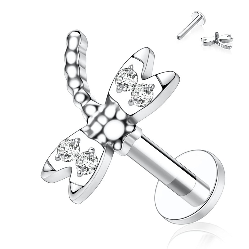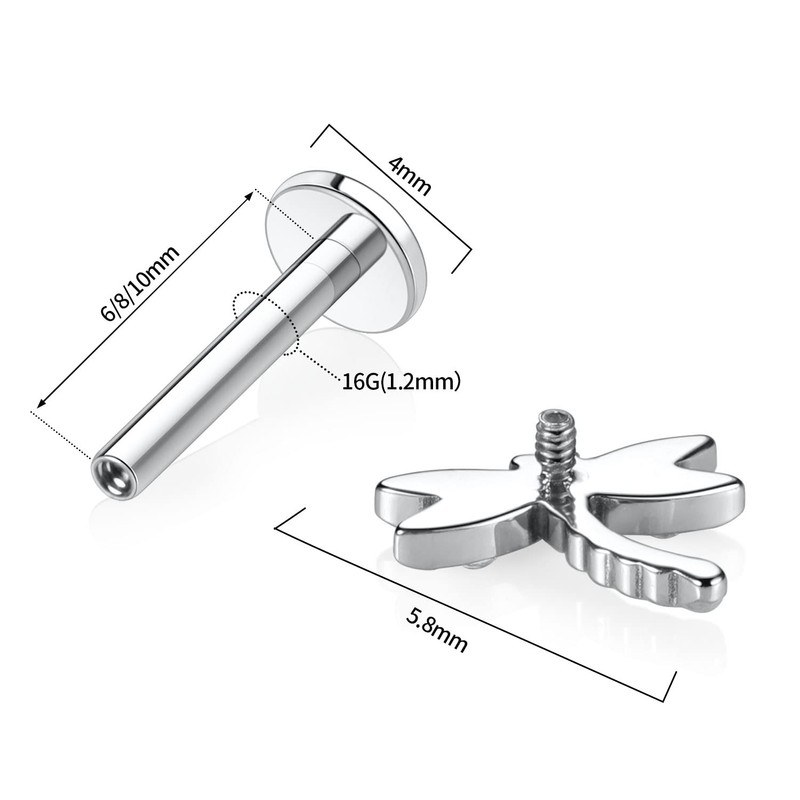 - Unique Design Perfect Fit: This labret stud with dragonfly shape in the top,which is best choice for body piercing including lip stud,monroe piercing jewelry, nose studs,conch piercing,cartilage piercing,tragus earring,rook jewelry,lobe earring stud helix earring etc.To make you nose or ear unique and charming