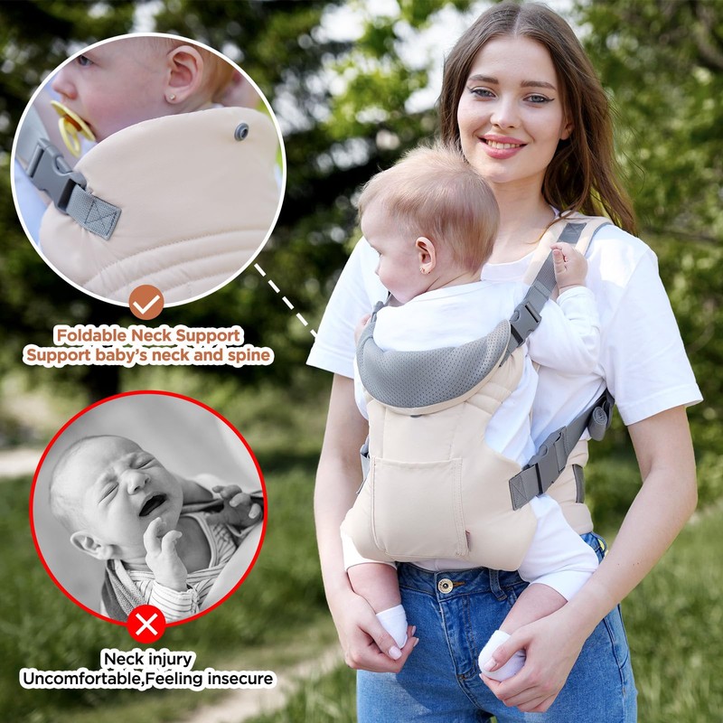 GAGAKU Baby Carrier Newborn to Toddler, Ergonomic Baby Carrier with Hip Seat for 0-36 Months, Easy to Carry Face to Front and Back for Children (Cream)