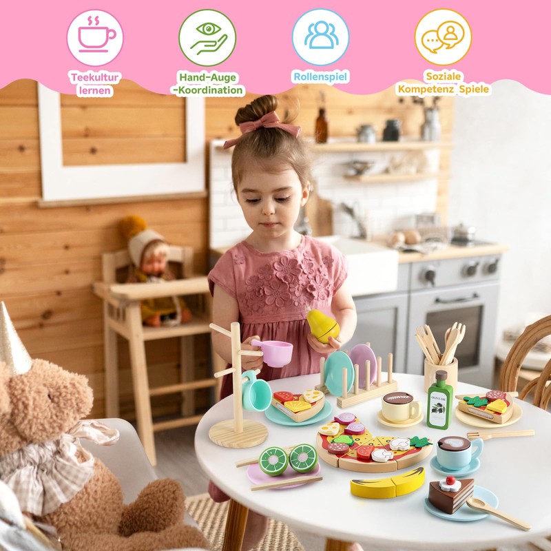 - 27-Piece Premium Wooden Kitchen Set:The GAGAKU deluxe kitchen playset includes 27 premium wooden pieces (4 forks, 4 knives, 4 spoons, 4 cups, 4 saucers, 4 plates, 1 plate rack, 1 cup holder, and 1 storage cup) - everything needed to create a realistic cooking experience for little chefs. Watch as they set up their very first restaurant or host a tea party with this complete dining collection!