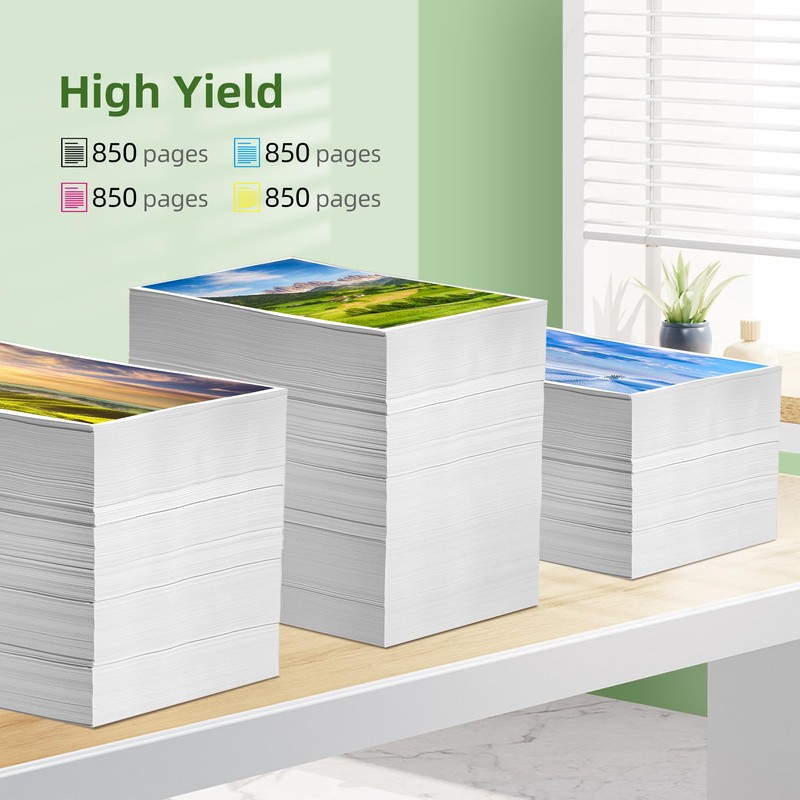 - Cartridge yield (approx.): Up to 3X more prints with us vs.others: 850 pages black, 850 pages cyan, 850 pages magenta, 850 pages yellow (at 5% coverage)