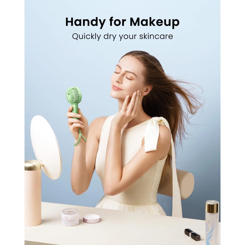 - Ultra-portable and Lightweight: Compact design makes the handheld fan a great airplane travel essentials; The mini fan only weighs 0.21 lb, easily keep in pocket, purse, cosmetics bag when travelling or on the road; The wrist strap will waive your hands