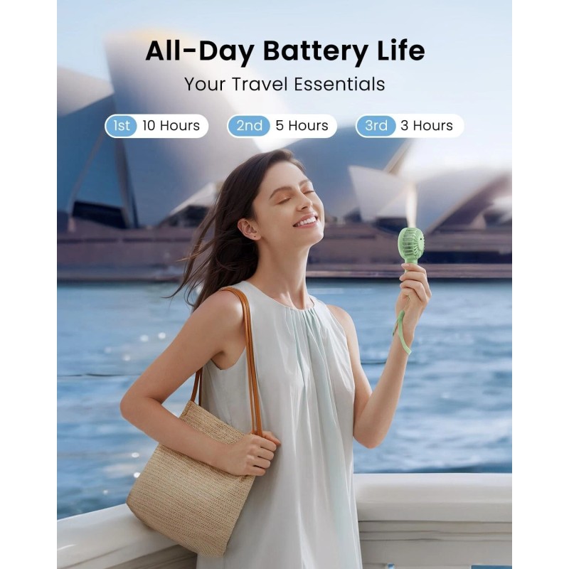 - Small and Powerful Fan: The hand fan has 3 speeds, offering flexibility based on your cooling needs; The travel fan produces a strong and steady stream of cool air; Great for outdoor, camping, beach, cruise, vacation, road trip, concerts, sporting events