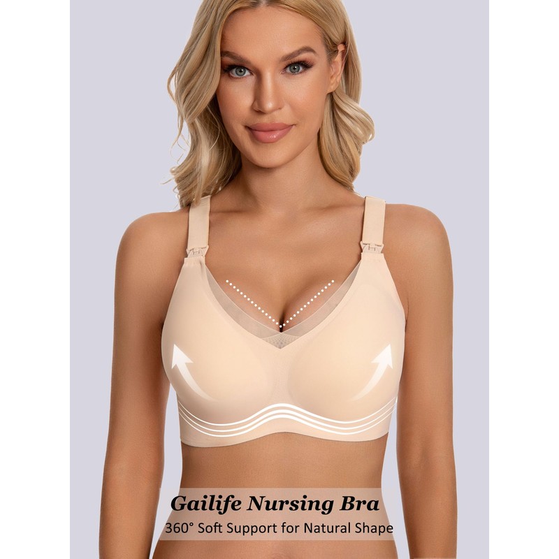 Gailife 3 Pack Nursing Bras for Breastfeeding Seamless V Neck Mesh Maternity ...