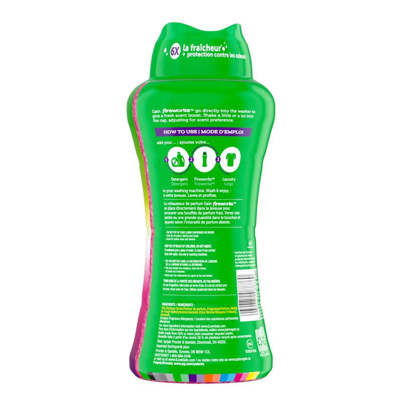 - Gain Fireworks In-Wash Scent Booster gives your laundry up to 12 weeks of freshness, from wash until wear