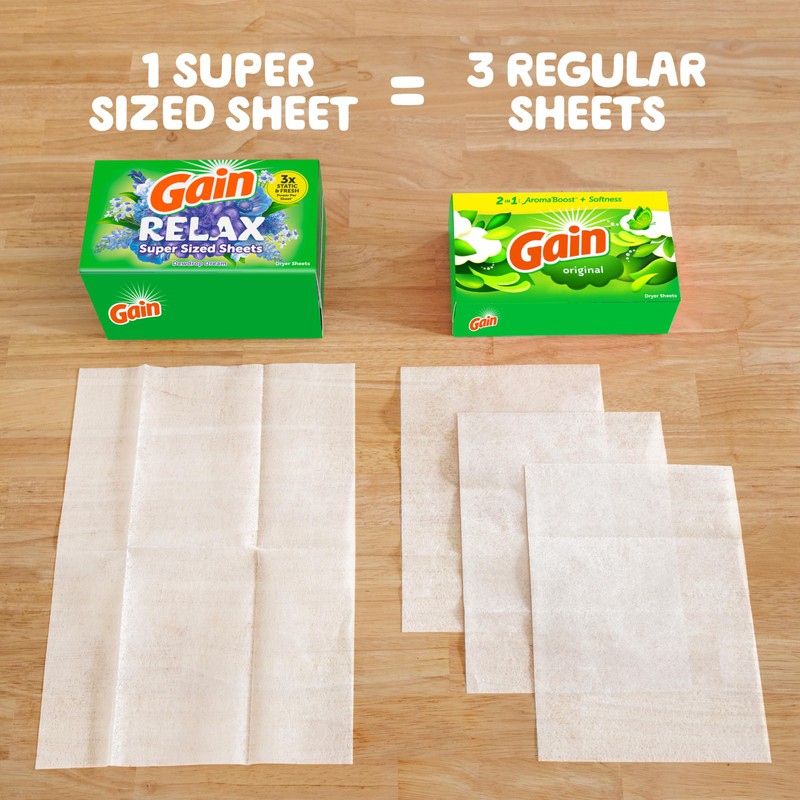 Gain Super Sized Dryer Sheets, Laundry Fabric Softener, Relax, 130 Count