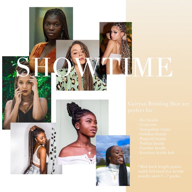 Gairyan's synthetic hair uses Yaki synthetic fibre. This synthetic hair material is easier to braid. The braided braids are also smoother and not knotted. We have more than 20 colours to choose from. We now have three packaging specifications.