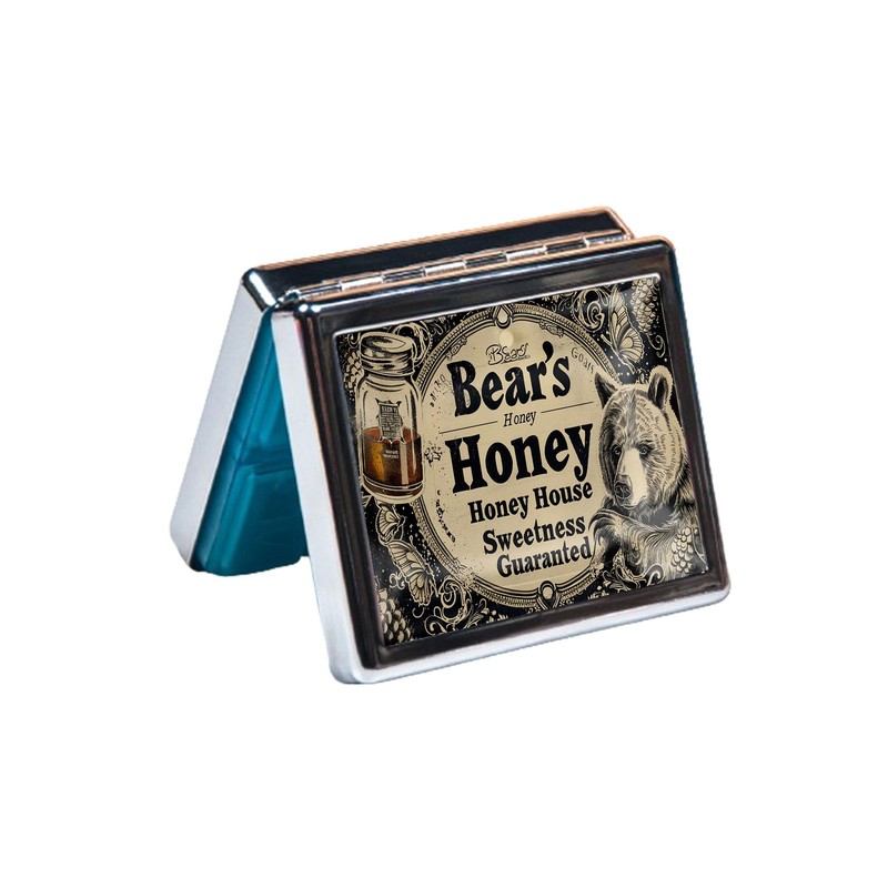 Gakivit 7 Day Travel Pill Organizer with Mirror Shiny Silver Chromed 8 Compartment Pill Box for Vitamins and Medications Compact and Stylish Medicine Case (Bear's Honey)