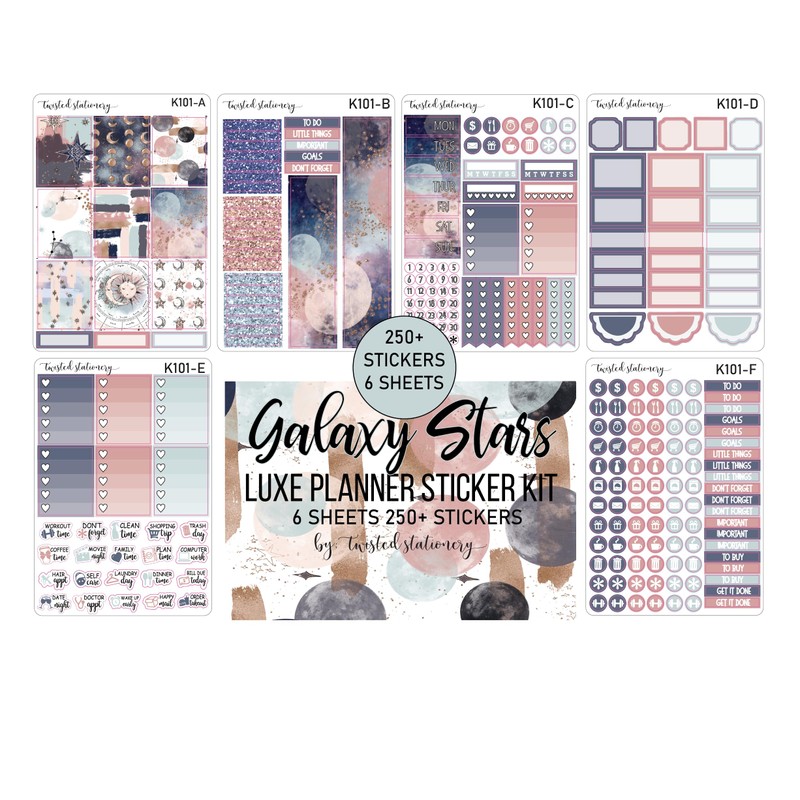 Galaxy Stars Luxe Planner Stickers - Weekly Sticker Kit 6-Pages 250+ Stunning Functional and Colorful Stickers, Calendar Stickers Includes Festival Theme Journal Sticker