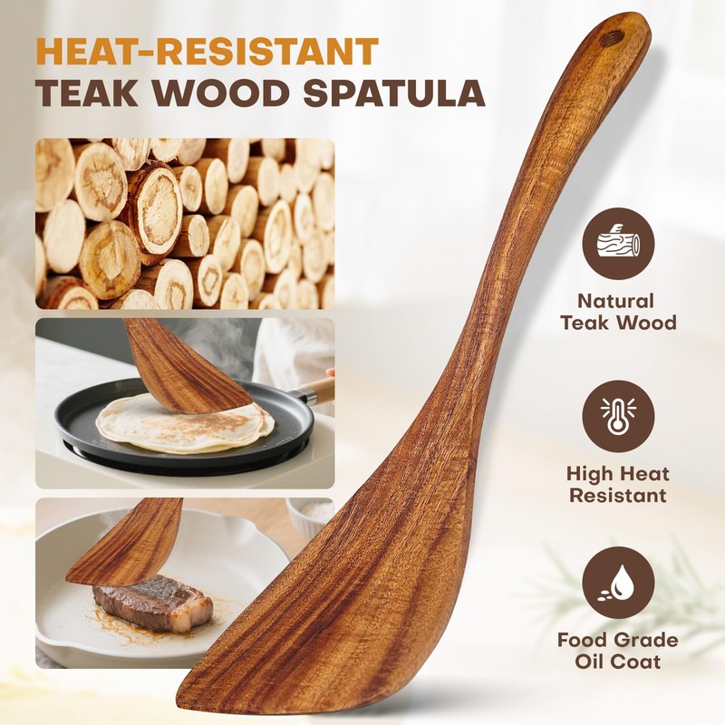 3. Wooden scraper is ideal for scraping, stirring and turning and is suitable for pans, stoves, woks etc. Wooden spatula has a practical design that makes it easier to turn food in the pot, and the extended handle reduces the risk of burns caused by hot oil.
