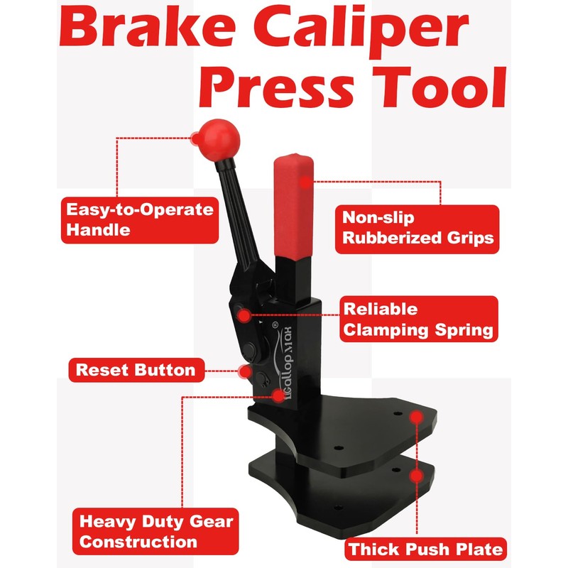 - Unleash the power of the Universal Brake Caliper Press Tool for a swift and effortless solution to securely and precisely push caliper pistons back into position. It's like having a pit crew in your toolbox, ready to ensure your brake job goes off without a hitch!