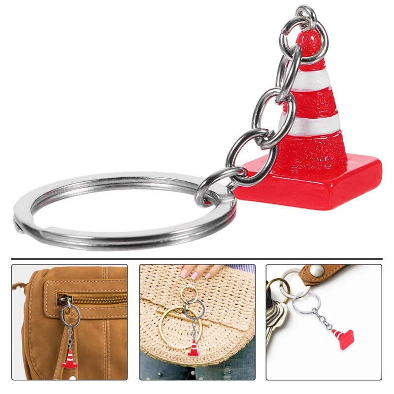 GALPADA Creative Traffic Cone Key Ring Chain Construction Party Favors Construction Key Chains Alloy Key Chain Cute Mini Traffic Cones