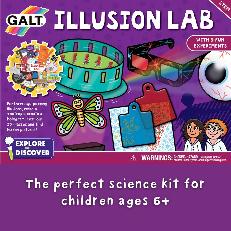 Galt Illusion Lab - Explore & Discover Childrens Science Kit, 9 Fun Science Experiments for Kids, Eye Popping Illusions - STEM Toys, National Curriculum Compatible - Gifts for Boys & Girls Ages 6 Plus
