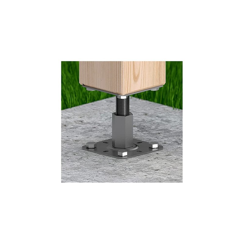 Galvanised 100-150mm Height Adjustable Elevated Post Base Support (Size: 100 x 100mm)