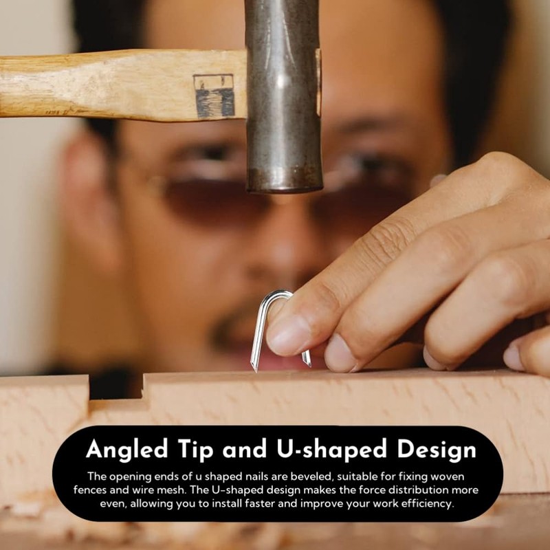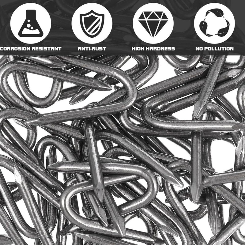 - Angled Tip & U-Shaped Design for Secure Fastening:The beveled ends and U-shaped structure allow for easy, even force distribution when hammering into wood, drywall, brick, concrete, or plaster, ensuring a strong and stable hold for fences and wire mesh