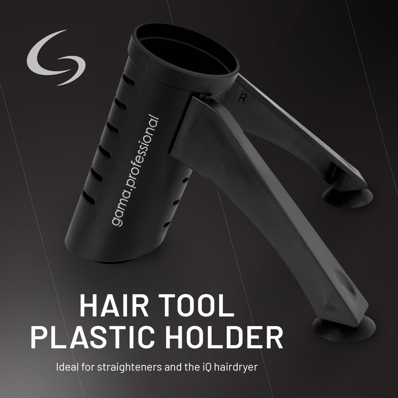 GA.MA iQ Perfetto Hair Dryer Stand, Space-Saving Secure Suction Cup Mount for Salon & Home Use, Black